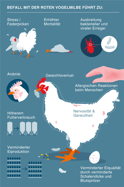 Vor allem in der Haltung von Legehennen hat sich europaweit das Problem der Bekämpfung der Roten Vogelmilbe drastisch verschärft. Die Ursachen hierfür sind