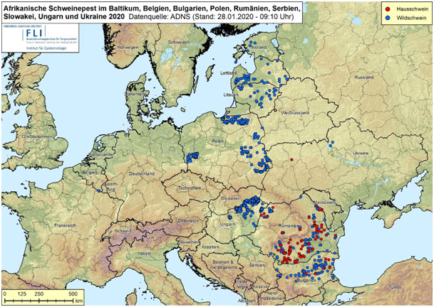 Von den afrikanischen Ursprungsländern aus hatte die ASP sich bereits vor Jahren in den Ländern um Weißrussland ausgebreitet. Seit 2014 sind Erkrankungen bei Haus- und Wildschweinen in den Grenzgebieten zu Drittländern, wie Polen, Litauen und Estland festzustellen. Im Sommer 2017 erreichte das Virus die Tschechische Republik und im April 2018 auch Ungarn. Im Jahr 2019 sind noch Serbien und die Slowakei hinzugekommen.