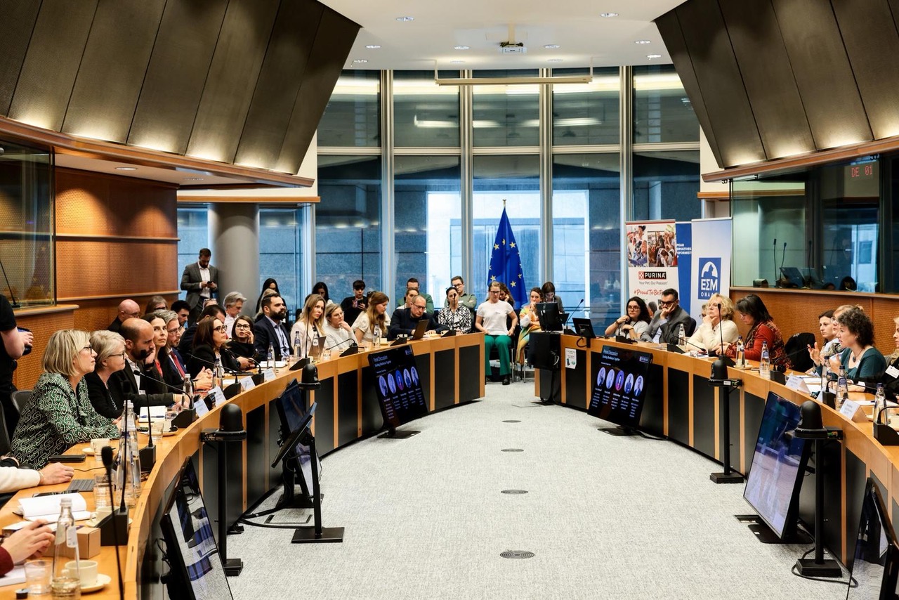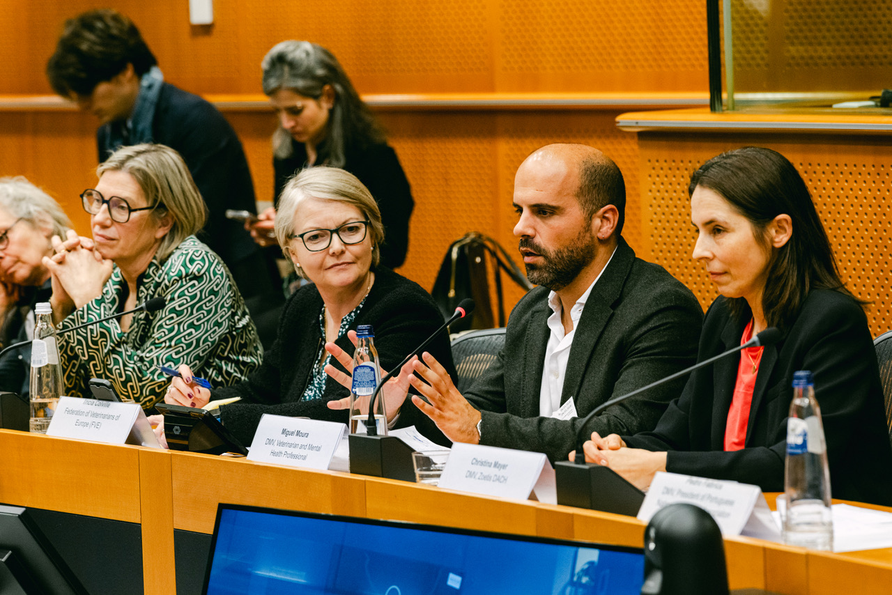 Nach dem Besuch des Purina Firmensitzes in Brüssel, der den Teilnehmenden aus zahlreichen europäischen Ländern ausgiebig Zeit für Networking und Austausch bot, ging es für alle weiter zum Europäischen Parlament. Hierhin hatte das Unternehmen gemeinsam mit MEP Emmanouil Fragkos, dem stellvertretenden Vorsitzenden des Ausschusses für Umweltfragen, öffentliche Gesundheit und Lebensmittelsicherheit (SANT) sowie dem einzigen Tierarzt im EU-Parlament, zu einer Panel-Diskussion zum Thema Mental Health in der Tiermedizin geladen. Durch die Diskussion führten unter anderem die Expert:innen Tricia Colville (FECAVA), Christina Mayer (Zoetis) und Pedro Fabrica (Ordem dos Médicos Veterinários) sowie Rosa Carbonell, Head of B2B & Veterinary Affairs bei Nestlé Purina PetCare & FEDIAF Präsidentin, und Miguel Moura Esteves (Tierarzt, NLP-Trainer und zertifizierter Coach u.a. für Individual- und Organisationsresilienz).