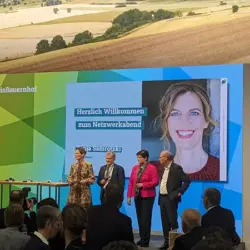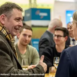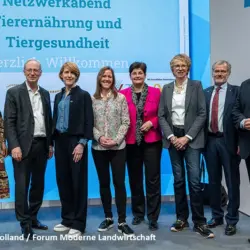 Anschließend fand eine Podiumsdiskussion über „Gesunde Tiere, Gesundes Klima, Gesunde Lebensmittel“ statt, an der neben Färber noch Tierärztin Dr. Johanna Sieverding sowie Dagmar Klingelhöller, die Geschäftsführerin der AHG Schweineservice, und Diana Wicht als Supply Chain Lead von McDonalds Deutschland teilnahmen. Moderiert wurde die Veranstaltung von Tanja Samrotzki.